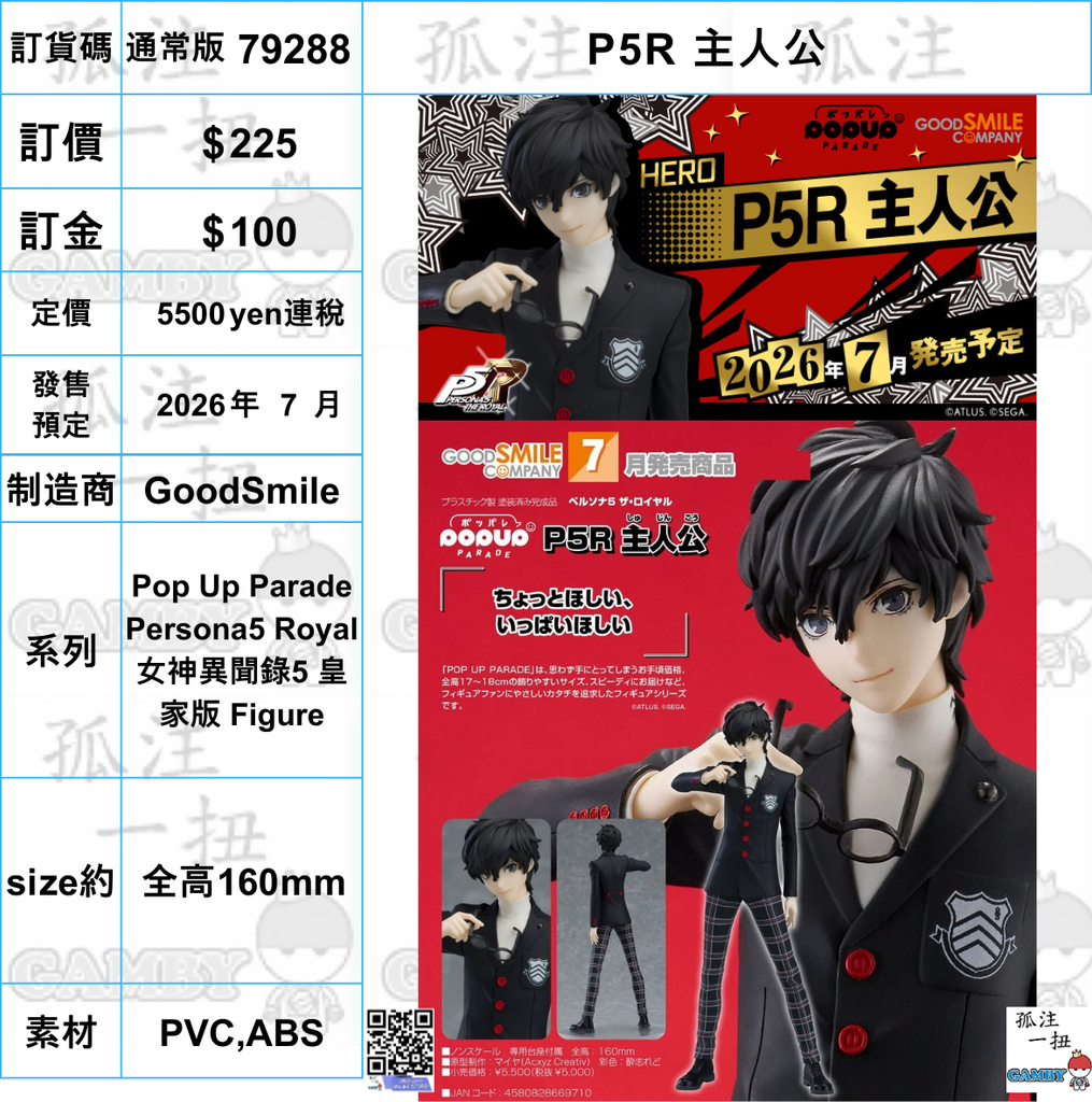 訂貨碼:79288 <訂價$225> #免手續費(通常版)P5R 主人公=Pop Up Parade Persona5 Royal 女神異聞錄5 皇家版 Figure