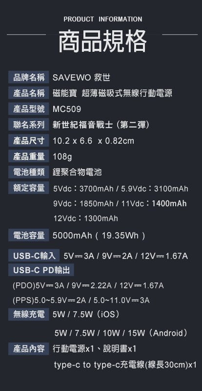 Z(ONLINESALES等通知現貨)No:148378 #MC509 超薄磁吸式行動電源 EVA Mark 06= SAVEWO X EVANGELION 【現貨 其他】4897115148378