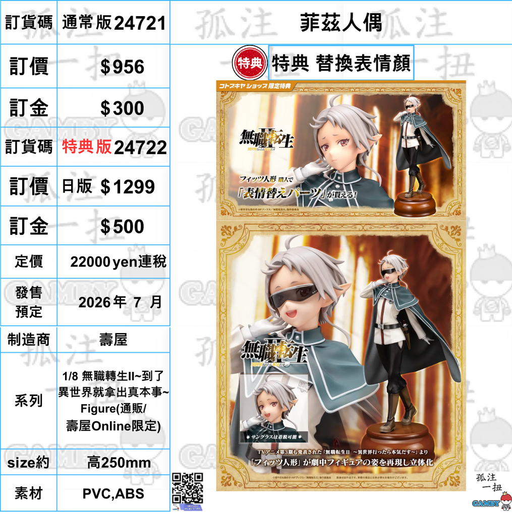 訂貨碼:24721&24722 <訂價$956&1299> #(免手續費) 菲茲人偶=1/8 無職轉生II~到了異世界就拿出真本事~Figure