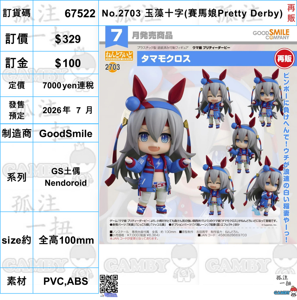訂貨碼:67522 <訂價$329> #(免手續費)No.2703 玉藻十字(賽馬娘Pretty Derby) 再販=GS土偶Nendoroid