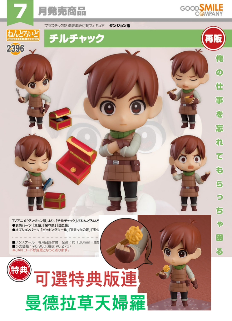 訂貨碼:67736&67737 <訂價$324&$420> #(免手續費)No.2396 奇爾查克(迷宮飯)再販=GS土偶Nendoroid