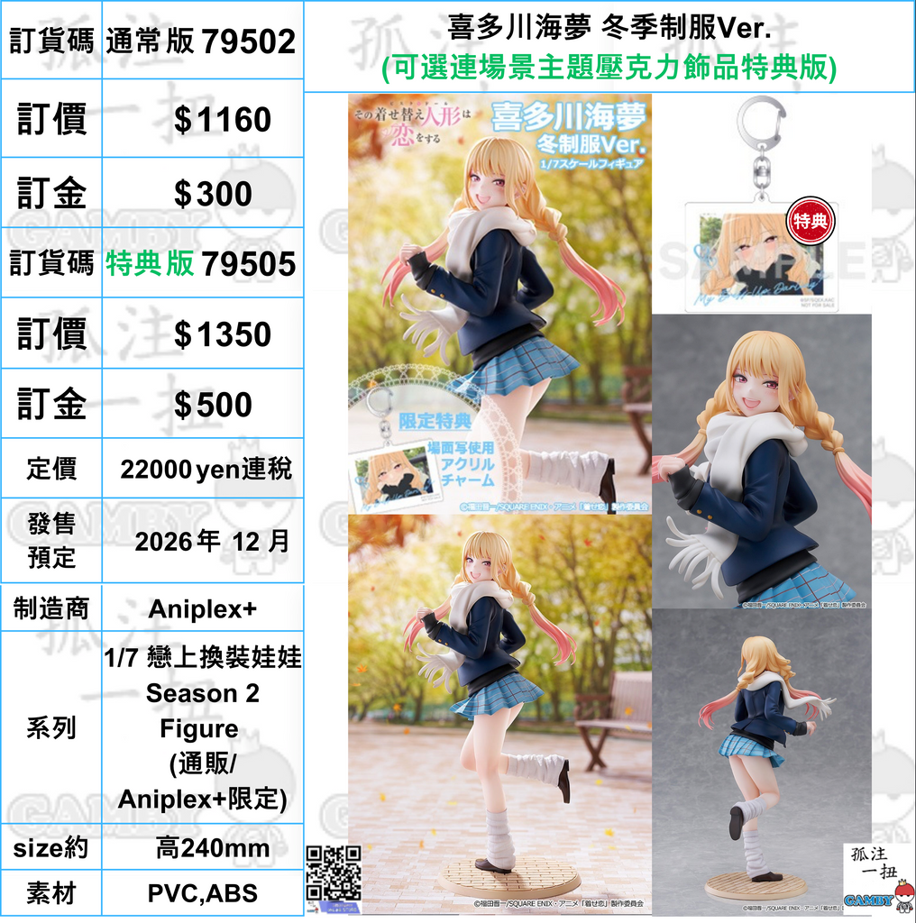 訂貨碼:79502&79505 <訂價$1160&1350> #喜多川海夢 冬季制服Ver.=1/7 戀上換裝娃娃 Season 2 Figure