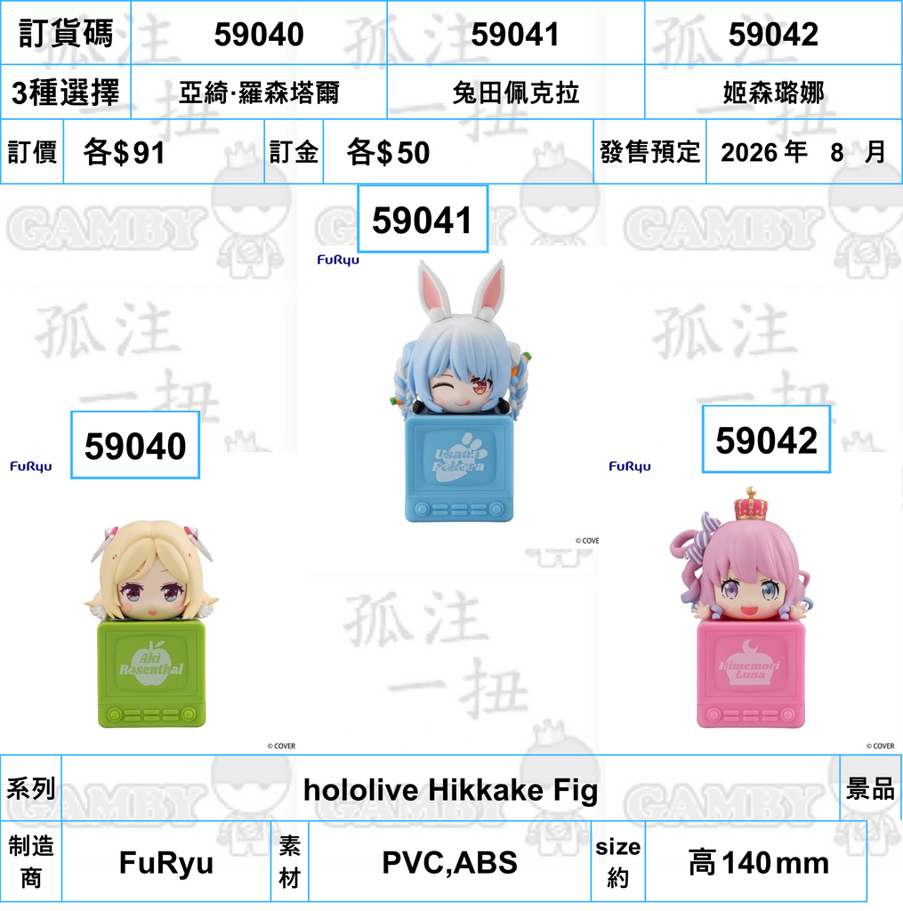 訂貨碼:59040-59042 <訂價各$91> #(免手續費)hololive Hikkake Fig