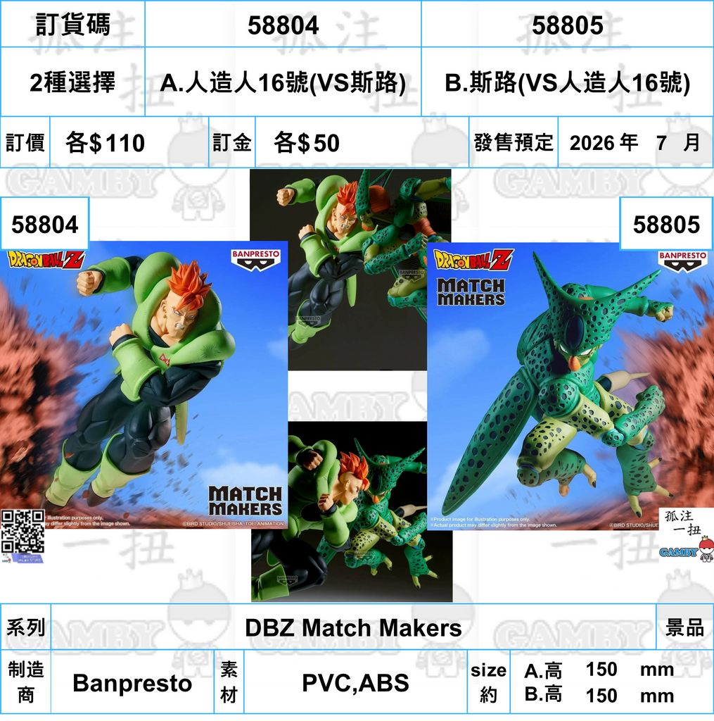 訂貨碼:58804&58805 <訂價各$110> #(免手續費)人造人16號VS斯路=DBZ Match Makers