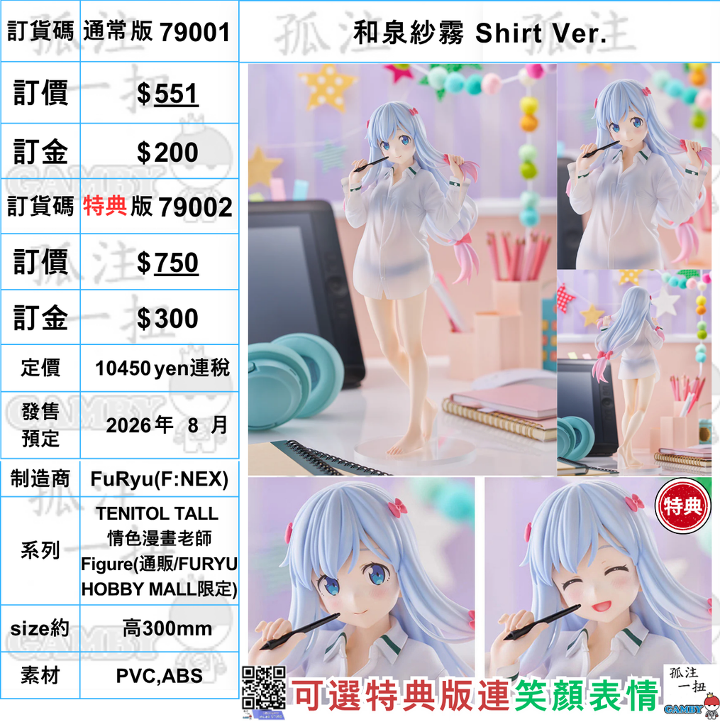 訂貨碼:79001&79002 <訂價$551&$750> #和泉紗霧 Shirt Ver.=TENITOL TALL 情色漫畫老師 Figure