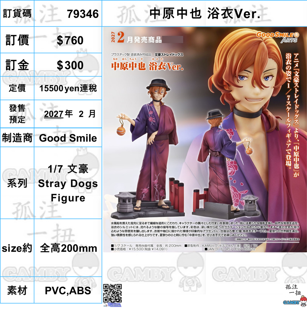 訂貨碼:79346 <訂價$760> #(免手續費)中原中也 浴衣Ver.=1/7 文豪Stray Dogs Figure