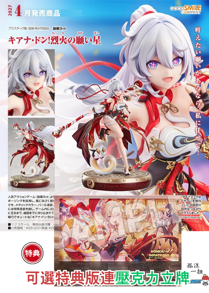 訂貨碼:79608&79609 <訂價$1423&1650> #(免手續費)琪亞娜·咚!熾願吉星=1/7 崩壞3rd Figure
