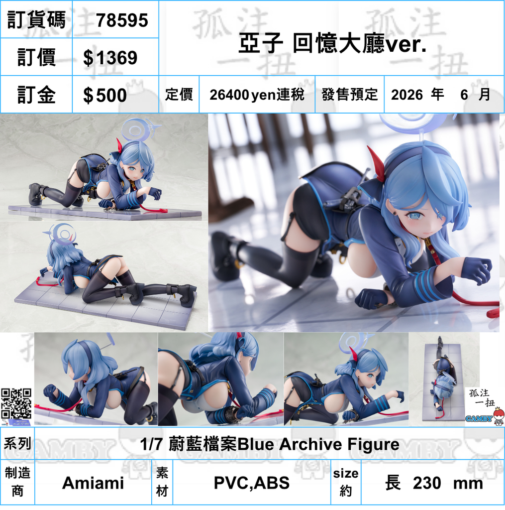 訂貨碼:78595 <訂價$1369> #亞子 回憶大廳ver.=1/7 蔚藍檔案Blue Archive Figure