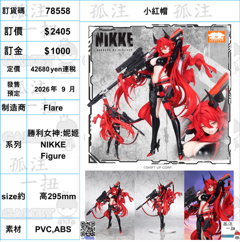 訂貨碼:79249&79250 <訂價$1039&$1149> #)拉毗:小紅帽‧紅色風情=1/7 勝利女神:妮姬NIKKE Figure