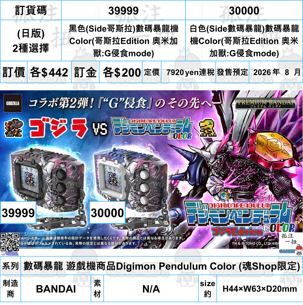 訂貨碼:39999&30000 <訂價各$442> #(日版)數碼暴龍機Color(哥斯拉Edition 奧米加獸:G侵食mode)=數碼暴龍 遊戲機商品Digimon Pendulum Color (魂Shop限定)