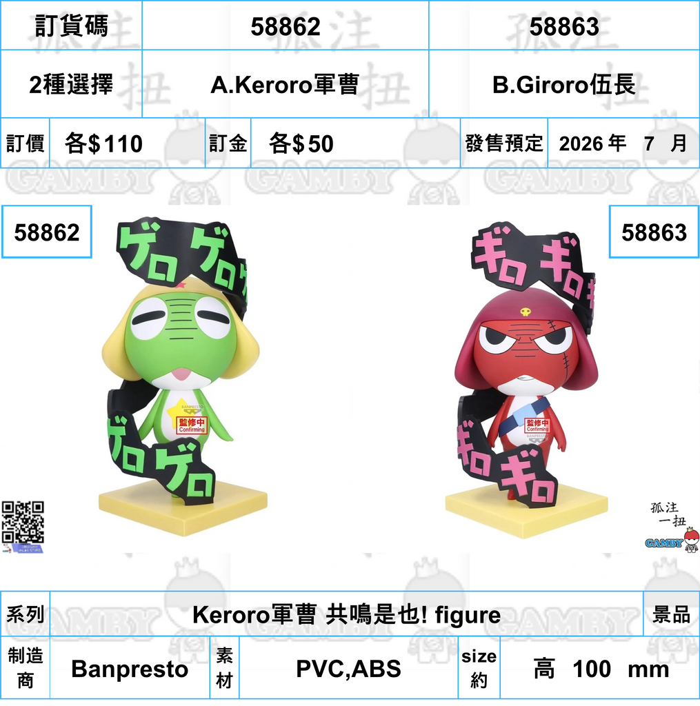 訂貨碼:58862&58863 <訂價各$110> #(免手續費)Keroro軍曹 共鳴是也! figure
