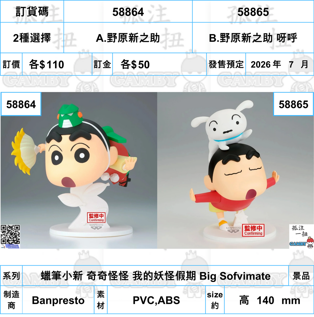 訂貨碼:58864&58865 <訂價各$110> #(免手續費)蠟筆小新 奇奇怪怪 我的妖怪假期 Big Sofvimate