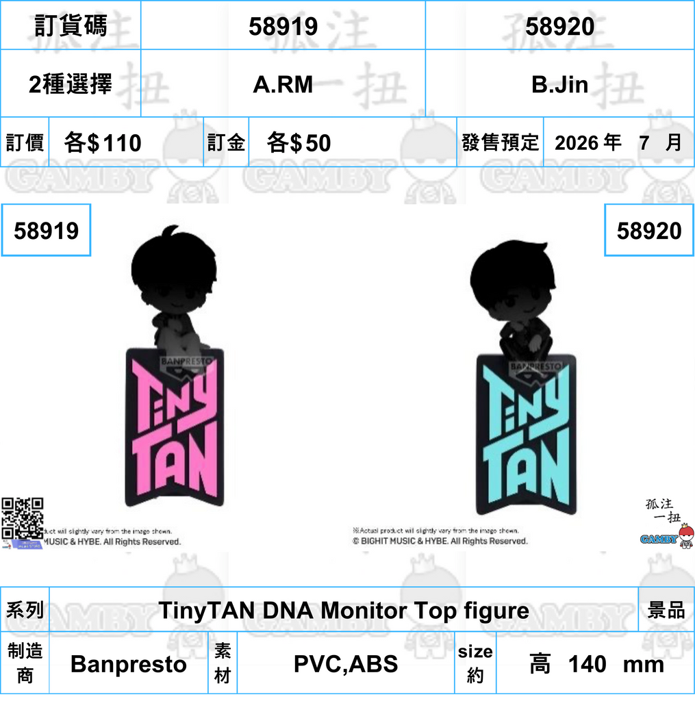 訂貨碼:58919&58920 <訂價各$110> #(免手續費)TinyTAN DNA Monitor Top figure