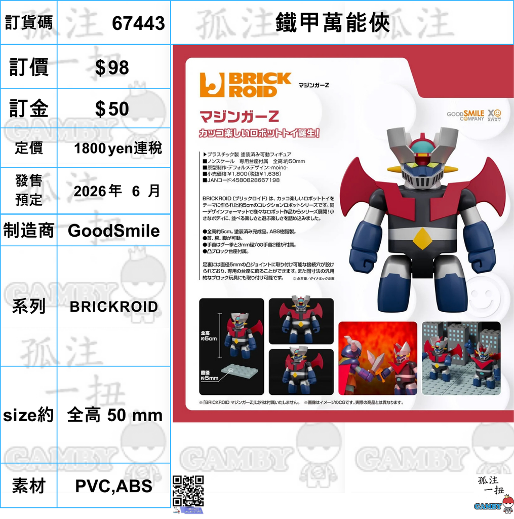 訂貨碼:67443 <訂價$998> #(免手續費)鐵甲萬能俠=BRICKROID
