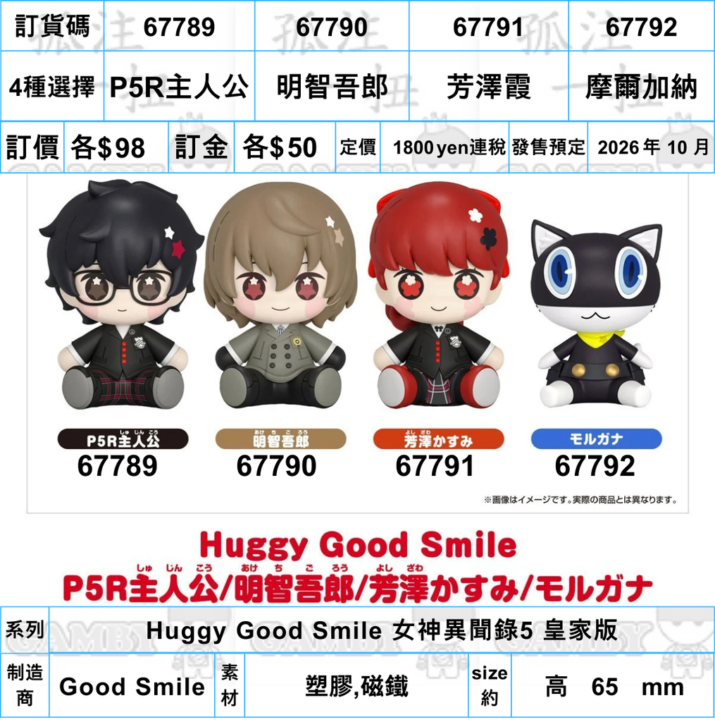 訂貨碼:67789~67792 <訂價各$98> #(免手續費)女神異聞錄5 皇家版=Huggy Good Smile