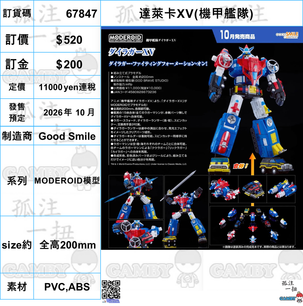 訂貨碼:67847 <訂價$520> #(免手續費)達萊卡XV(機甲艦隊)=MODEROID模型
