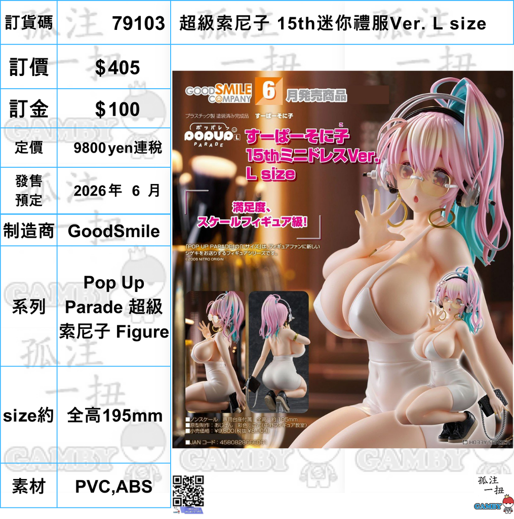 訂貨碼:79103 <訂價$405> #(免手續費)超級索尼子 15th迷你禮服Ver. L size=Pop Up Parade 超級索尼子 Figure