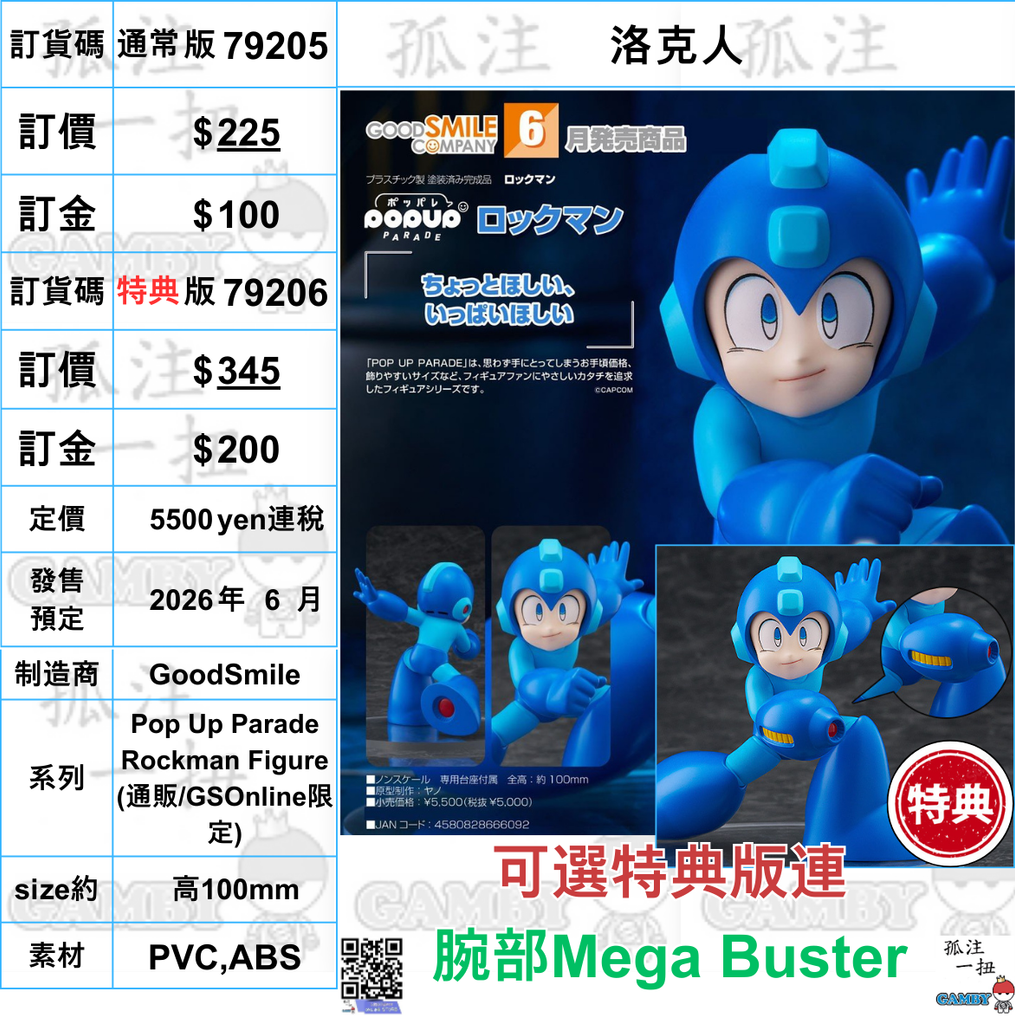 訂貨碼:79205&79206 <訂價$225&$345> #(免手續費)洛克人=Pop Up Parade Rockman Figure