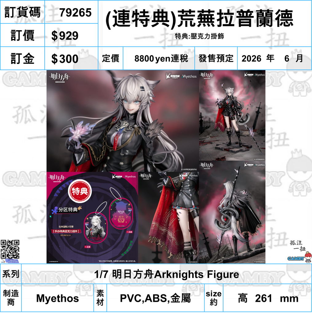訂貨碼:79265 <訂價$929> #免手續費(連特典掛飾)荒芙拉普蘭德=1/7 明日方舟Arknights Figure