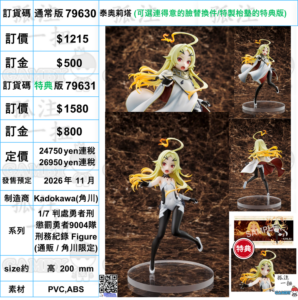 訂貨碼:79630&79631 <訂價$1215&1580> #泰奧莉塔=1/7 判處勇者刑 懲罰勇者9004隊刑務紀錄 Figure