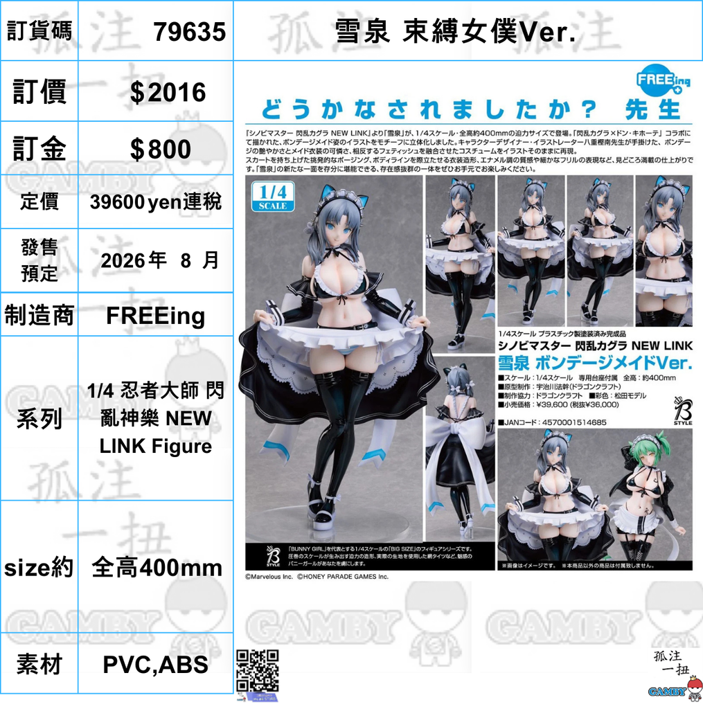 訂貨碼:79635 <訂價$2016> #(免手續費)雪泉 束縛女僕Ver.=1/4 忍者大師 閃亂神樂 NEW LINK Figure