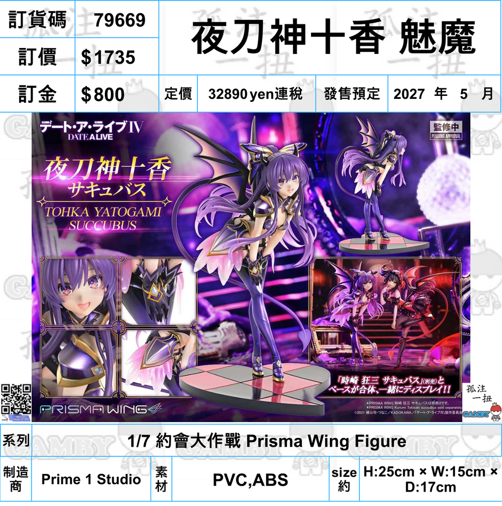 訂貨碼:79669 <訂價$1735> #(免手續費)夜刀神十香 魅魔=1/7 約會大作戰 Prisma Wing Figure