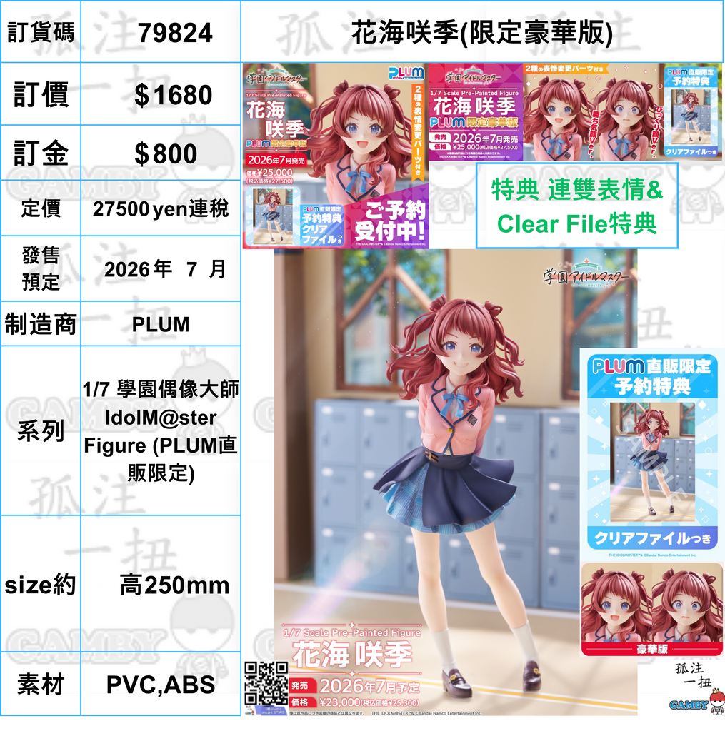 訂貨碼:79824 <訂價$1680> #(連雙表情&Clear File特典)花海咲季(限定豪華版)=1/7 學園偶像大師IdolM@ster Figure (PLUM直販限定)