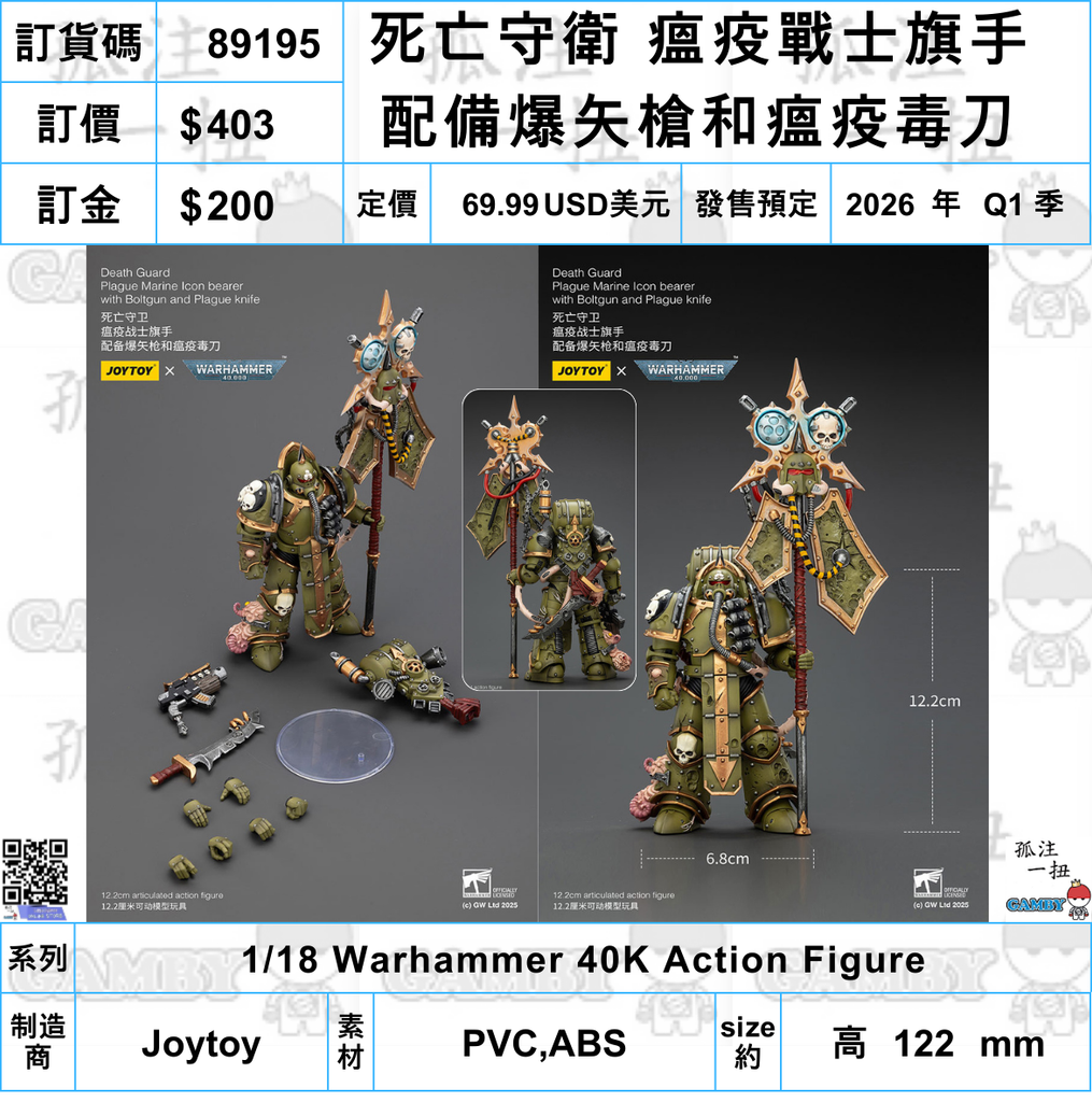 訂貨碼:89196-89198 <訂價各$403> #(免手續費)死亡守衛 腐毒領主終結者1 /2 / 3=1/18 Warhammer 40K Action Figure